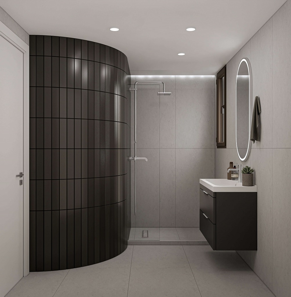 Σύγχρονος και δυναμικός σχεδιασμός με ποικιλία οριζόντιων και κατακόρυφων αρχιτεκτονικών στοιχείων που χρησιμοποιούνται για διασπάσουν οπτικά τον συμπαγή και μονολιθικό κύριο όγκο του κτιρίου.
