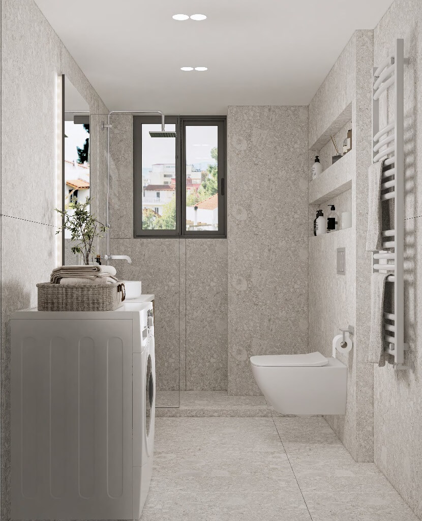 Τριώροφο κτίριο δεκατριών διαμερισμάτων σε προνομιακό σημείο του Γέρακα, κοντά στην Αττική Οδό. Αποτελεί μια ήπια σχεδιαστική προσέγγιση σε ένα καθαρά προαστιακό οικιστικό περιβάλλον με πρισματικούς κεραμοσκεπείς όγκους, γήινους χρωματικούς τόνους, ξύλο και γυαλί. Το συγκρότημα αποτελείται από αρκετά διαμερίσματα τύπου μεζονέτας , ενώ κάποια διαθέτουν αποκλειστικές χρήσεις κήπων.
